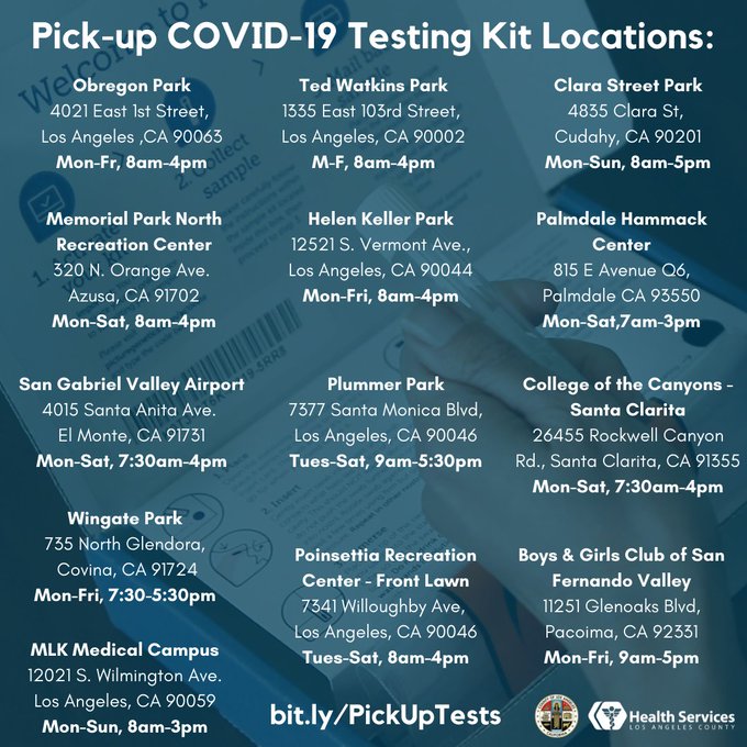 L A County Health Services On Twitter We Ve Expanded Covid 19 Pick Up Testing Kit Locations Across The County See The Flyers For New Locations Or Visit Https T Co J6dzkojn9m For More Information Https T Co Pfocpfdeqc Twitter